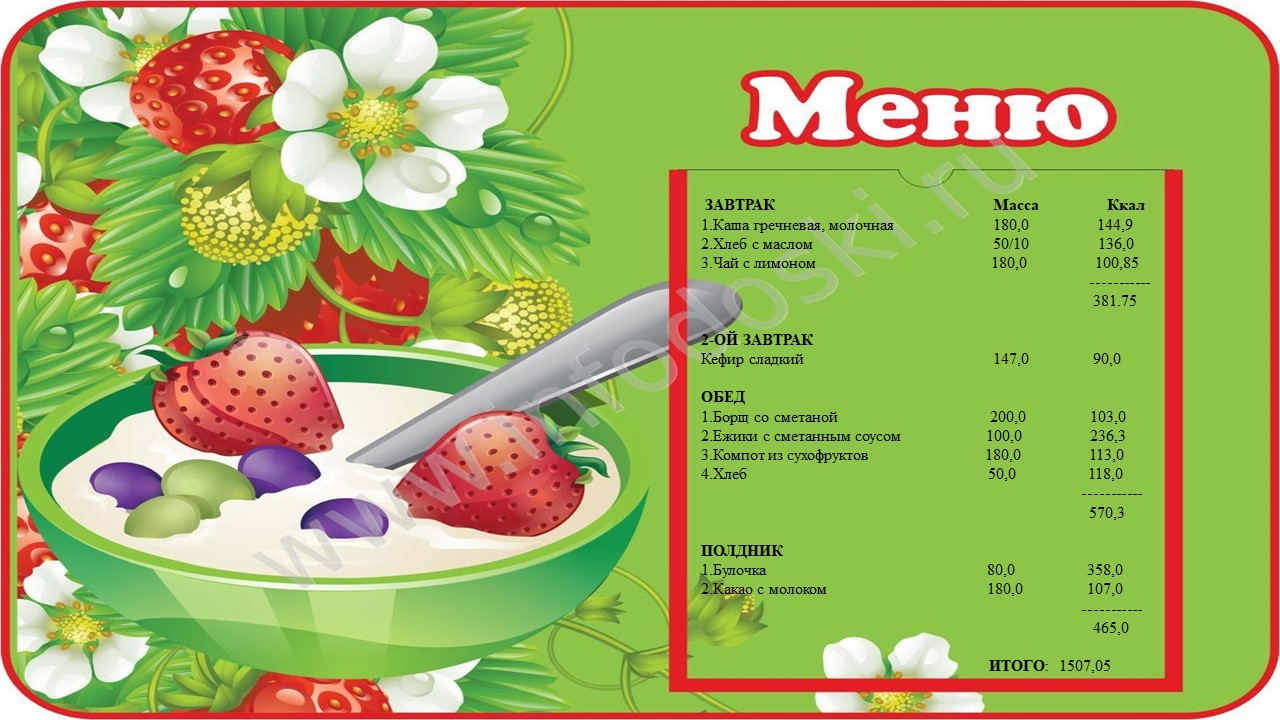 Сбалансированный рацион питания для дошкольников